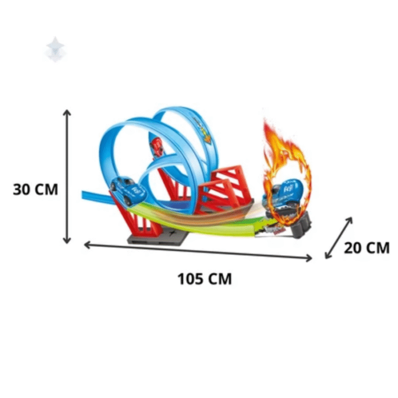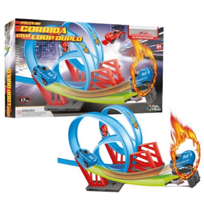 Com a Pista de Corrida com Loop Duplo da Pais&Filhos a diversão do seu filho é garantida, ele se diverte enquanto vê incríveis acrobacias em alta velocidade!!