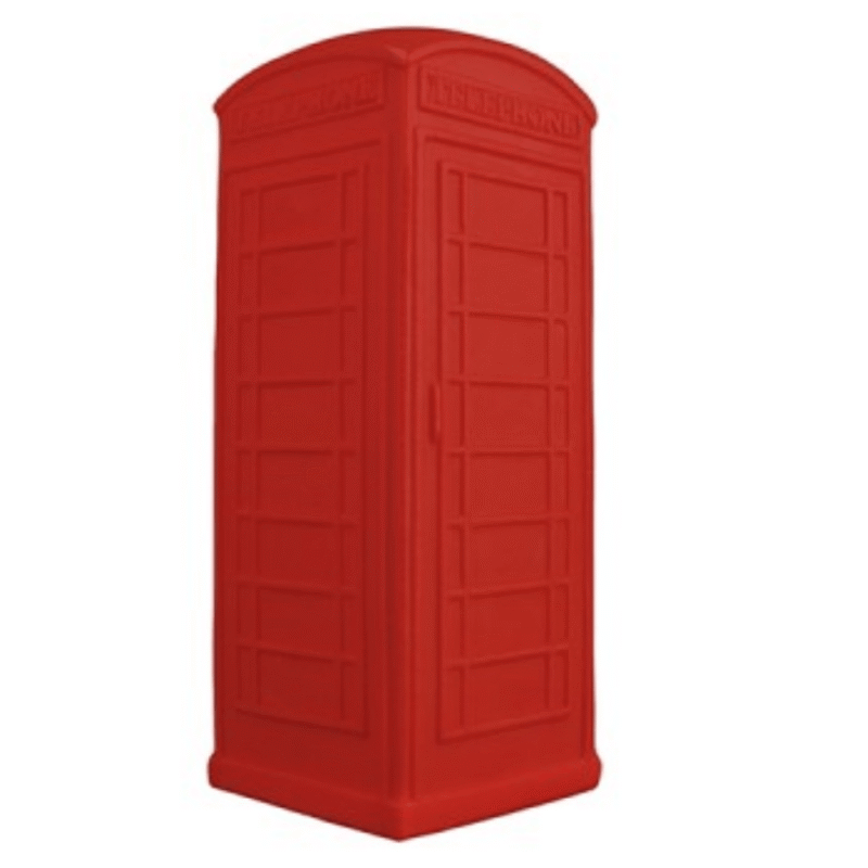 Luminária no formato das clássicas cabines telefônicas de Londres, produzida no Brasil em polietileno.