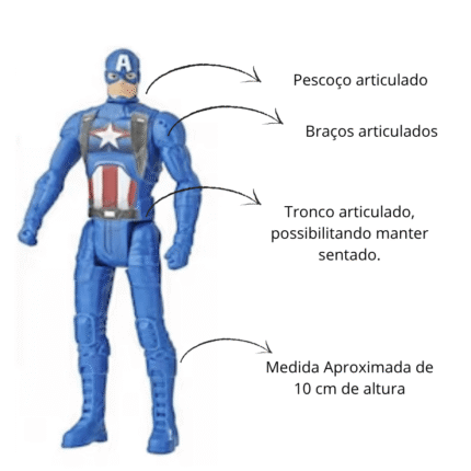 Conteúdo do Kit: 01 Thor, 01 Homem de Ferro e 01 Capitão América