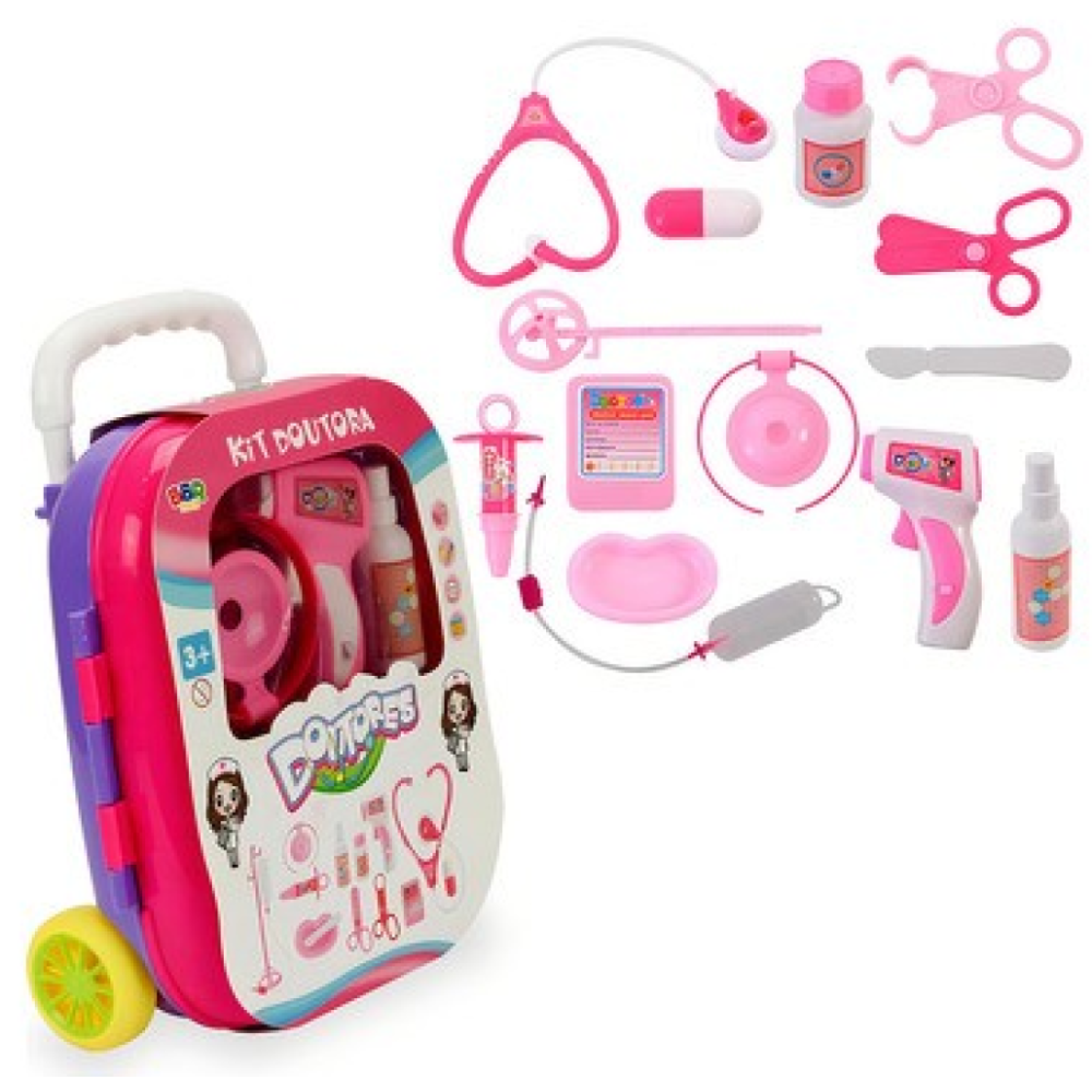 A diversão de cuidar e brincar está garantida com a Maleta de Médica! Com design prático em forma de maletinha, o kit vem com acessórios que simulam instrumentos médicos, como estetoscópio, seringa e termômetro, para que as crianças soltem a imaginação e brinquem de cuidar da família e dos amigos. Um brinquedo educativo que estimula a criatividade, a coordenação motora e o faz de conta, tornando a brincadeira ainda mais divertida.