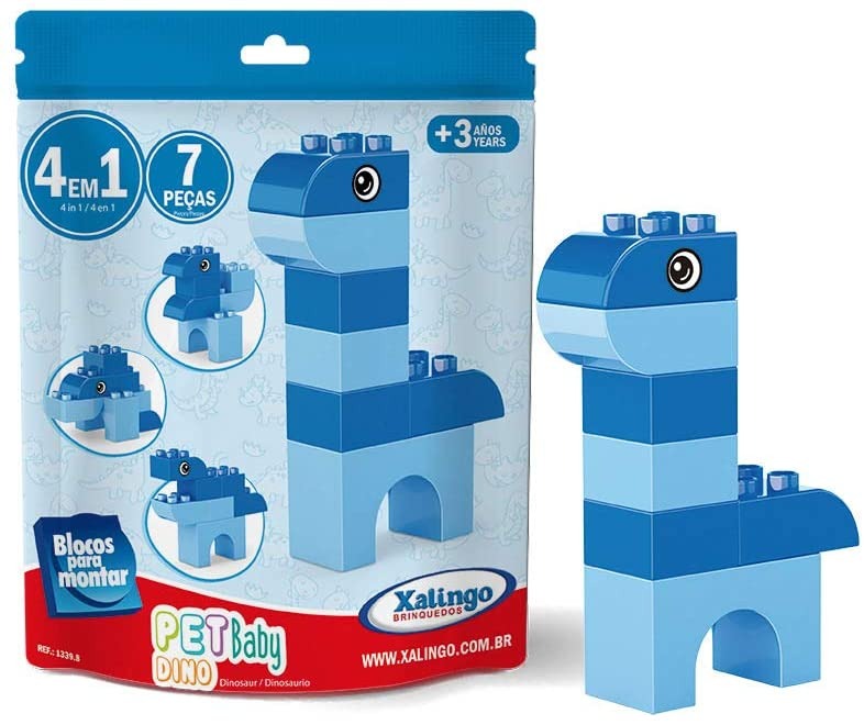 Início Brinquedos Blocos de Montar 4 em 1 Pet Baby Dino 07 Peças Xalingo