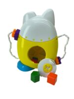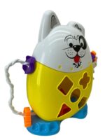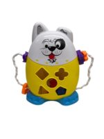 O brinquedo possui o rostinho de um lindo cãozinho, em sua barriguinha ele possui desenhos geométricos para o encaixe das peças. Na parte de trás ele possui um encaixe para que os pequenos possam retirar as peças para começar a brincadeira novamente.