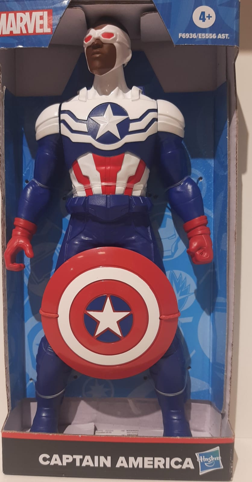 - O NOVO CAPITÃO AMÉRICA. O Capitão América Sam Wilson chega com seu traje vermelho, branco e azul para inspirar aventuras cheias de coragem. Uma action figure da Marvel que desperta a imaginação das crianças em cada missão heroica.