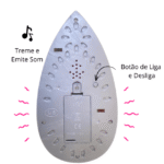 O produto vem com válvula spray para borrifar água e treme, além de acender uma luz e produzir som.