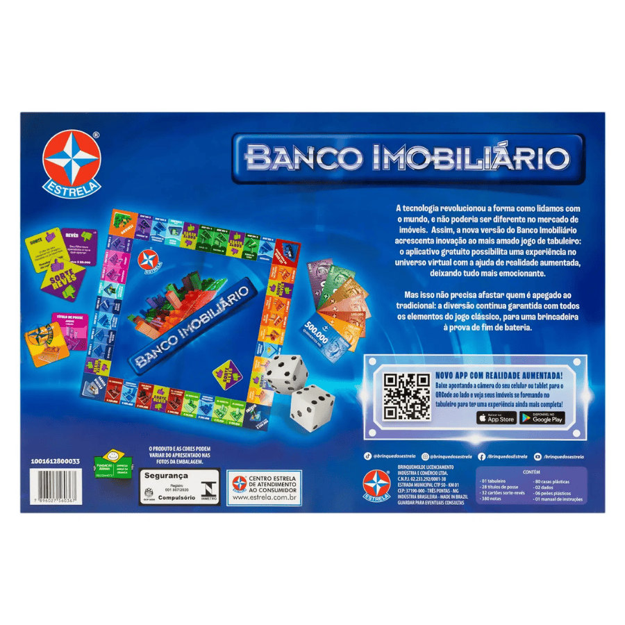O sucesso do Banco Imobiliário agora com realidade aumentada. O jogador poderá interagir e ver crescer incríveis construções em suas propriedades. Ainda mais diversão no clássico jogo Estrela.