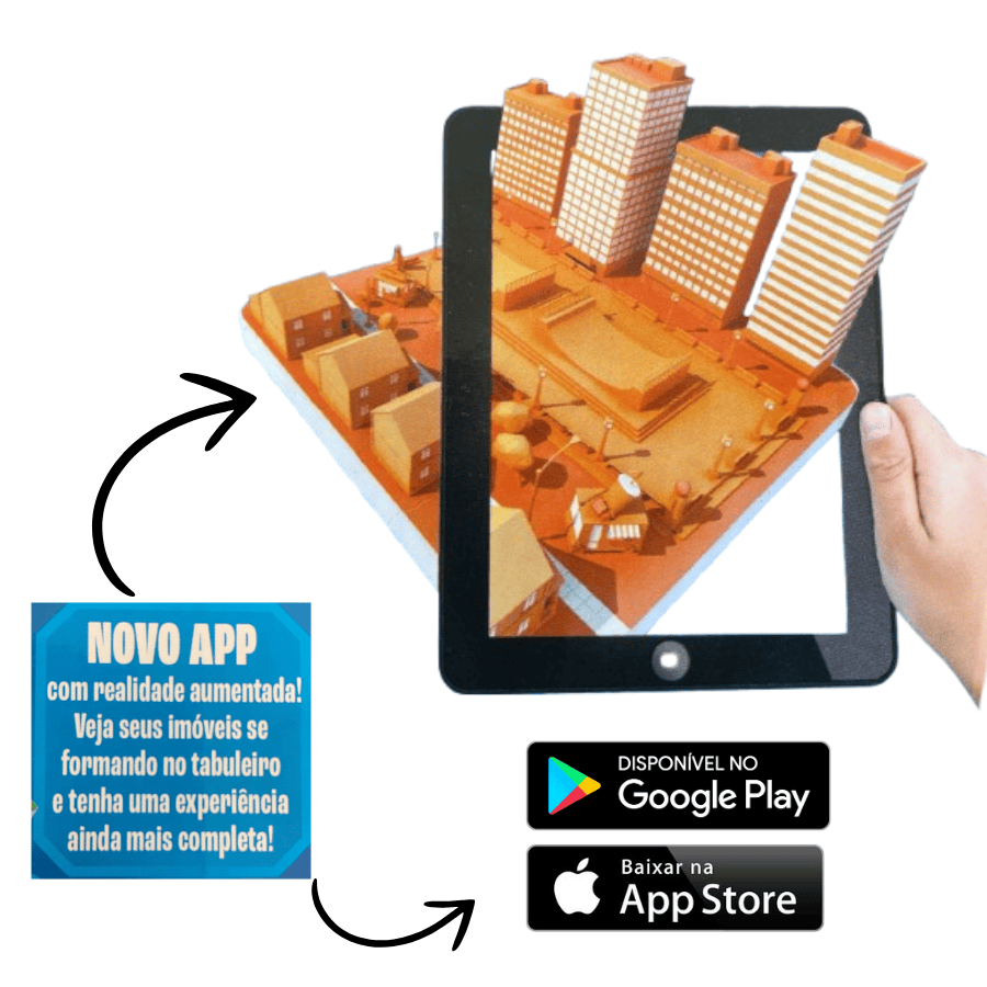 A tecnologia revolucionou a forma como lidamos com o mundo, e não poderia ser diferente no mercado de imóveis.Assim, a nova versão do banco imobiliário acrescenta inovação ao mais amado jogo de tabuleiro: O aplicativo gratuido possibilita uma experiencia no universo virtual com a ajuda de realidade aumentada ,deixando tudo mais emocionante.