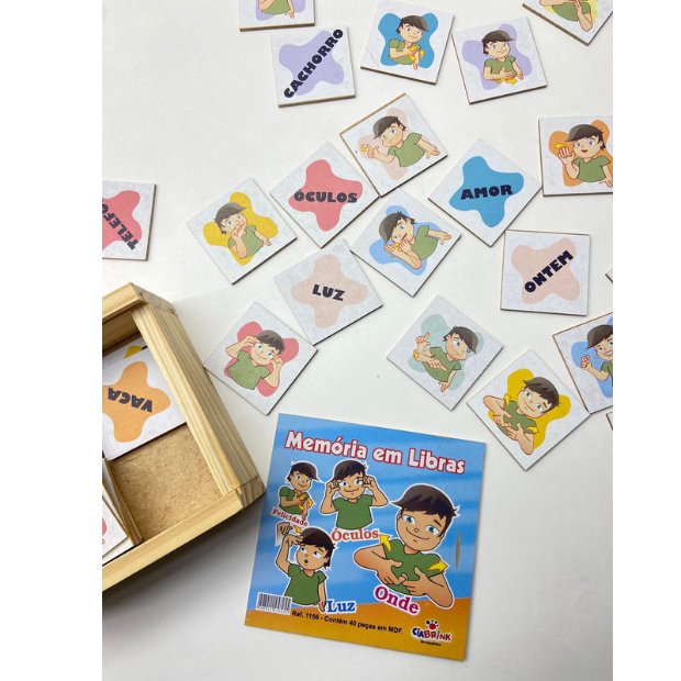 Apresentamos o Jogo da Memória em Libras 40 PEÇAS, uma divertida e educativa ferramenta para promover a inclusão infantil! Este jogo não só estimula a memória e a concentração, mas também ensina as crianças a se familiarizarem com a Língua Brasileira de Sinais (Libras), promovendo o respeito e a valorização da comunicação entre todos.