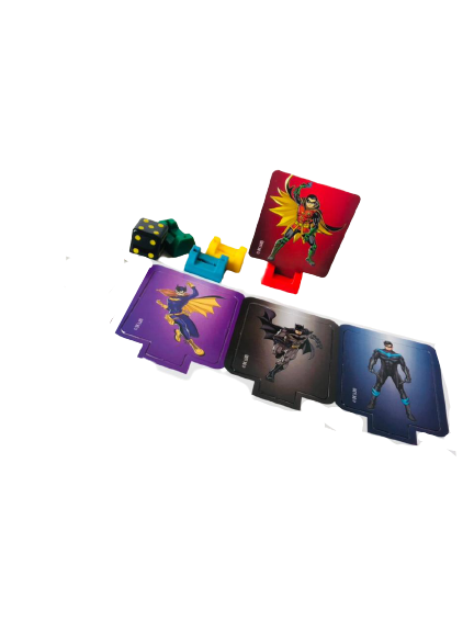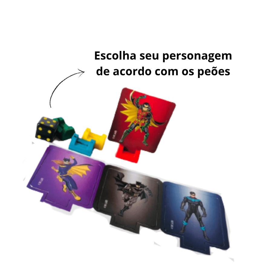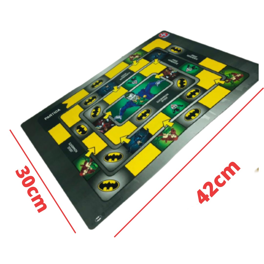 O tabuleiro é composto por 3 niveis por onde os jogadores devem se deslocar até chegar ao Covil do Coringa;