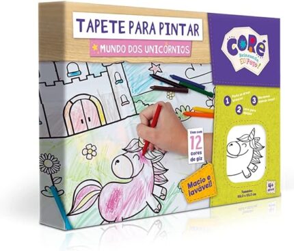 A imaginação vai ganhar vida com o Tapete para Pintar Mundo dos Unicórnios! Colorido e cheio de detalhes encantadores, o tapete é ideal para as crianças soltarem a criatividade, pintando e repintando quantas vezes quiserem. Feito em material resistente e fácil de limpar, garante horas de diversão educativa, estimulando a coordenação motora, a concentração e o aprendizado de cores. Um produto lúdico e mágico que transforma a brincadeira em um mundo de fantasia. ✨?