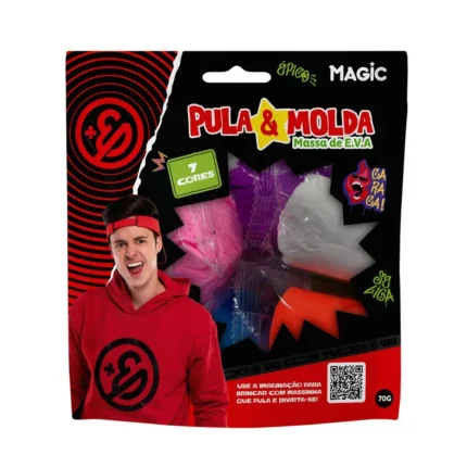• É uma massa de modelar em E.V.A. que “pula e molda”, ou seja, você pode modelar formas com ela e depois, ao secar ou ter uma certa consistência, elas “pulam”.