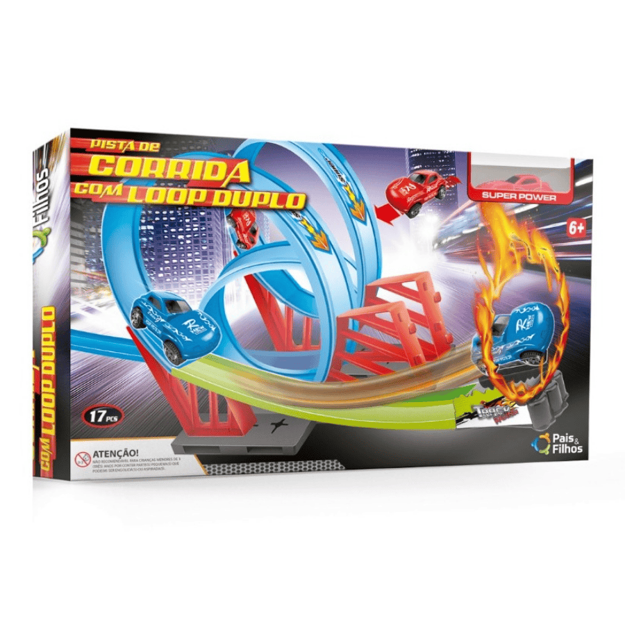Com a Pista de Corrida com Loop Duplo da Pais&Filhos a diversão do seu filho é garantida, ele se diverte enquanto vê incríveis acrobacias em alta velocidade!!